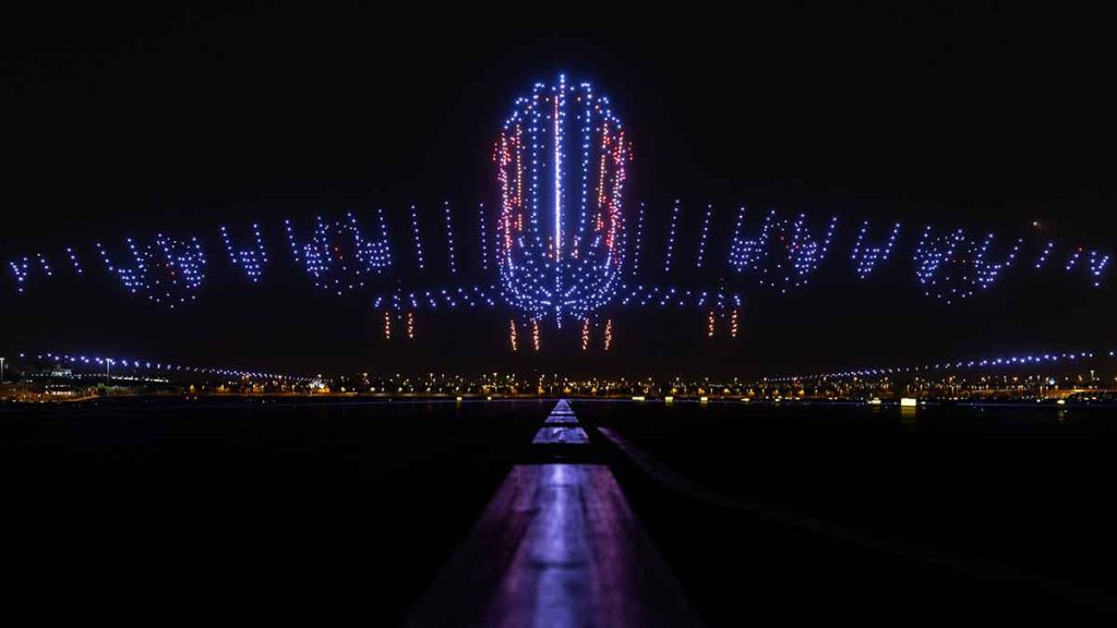 The UAE has never been a country to shy away from the grand and spectacular, so when Abu Dhabi International Airport was renamed Zayed International Airport, the occasion was always going to attract some fanfare. Tasked with creating an entertainment production to mark the launch on both a local and international scale, People produced a spectacular, technically challenging filmed showcase that featured a swarm of 1,750 drones, which formed a three-dimensional A380 aeroplane that ‘landed on the airport’s north runway.